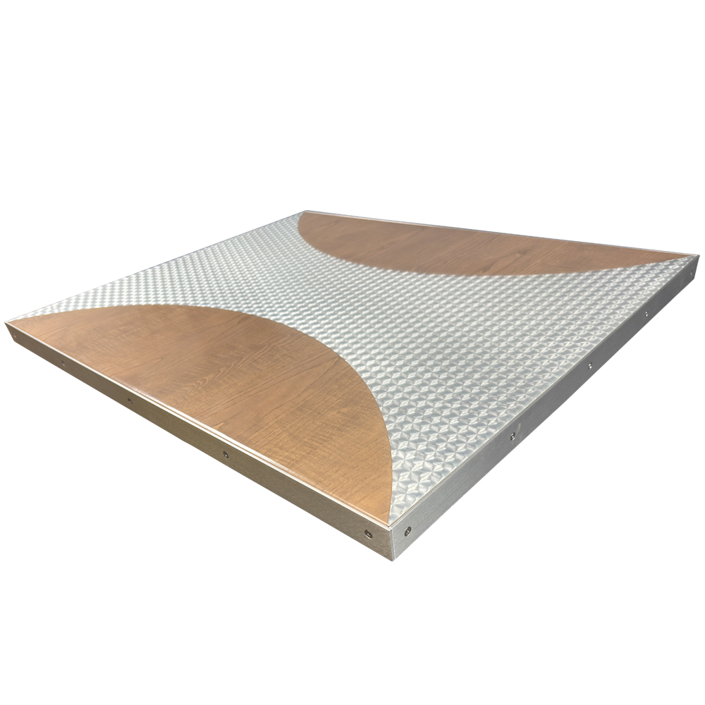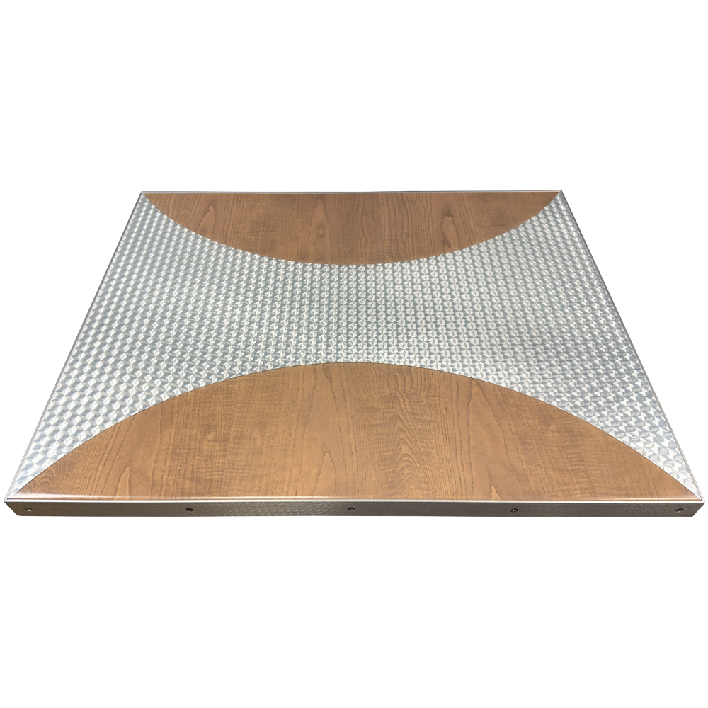 Ash Veneer and Silver Foil Print Tabletop in Custom Pattern with 1-1/2″ Brushed Aluminum Edges